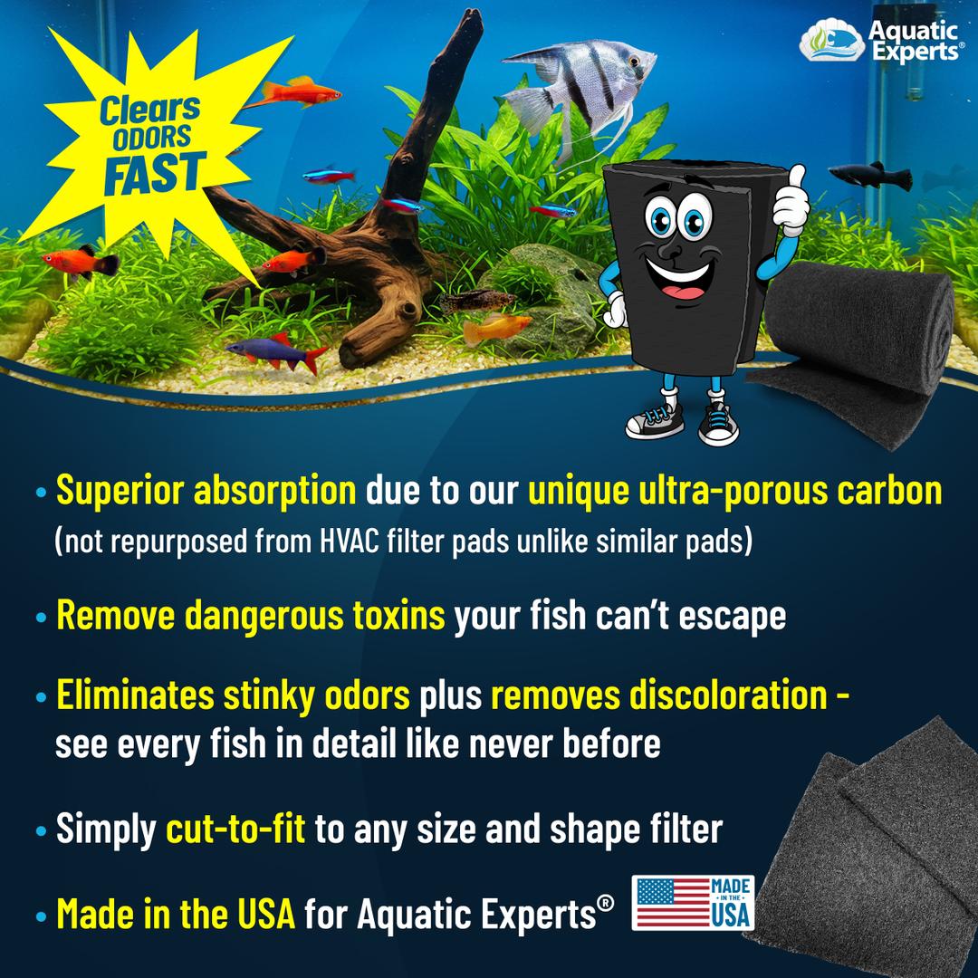 EASY TO USE - The activated carbon filter pad replaces loose carbon in your aquarium. Our charcoal filter pads perform the same duty as activated carbon granules without the mess of spilled carbon and carbon dust particles in your aquarium. Cut your aquarium carbon pad to fit your filter, rinse, and it is ready to go!