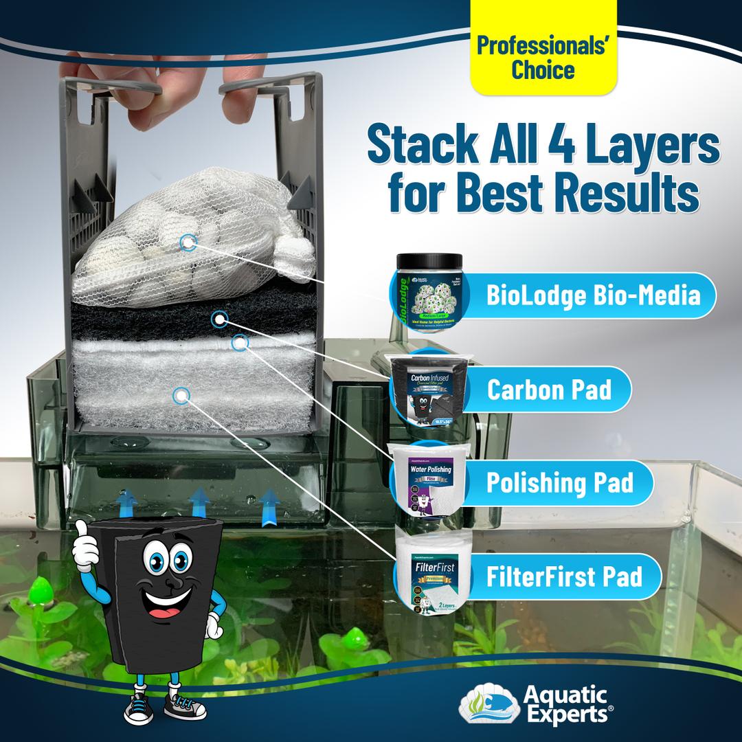 INCREASE WATER QUALITY - Changing the aquarium carbon filter pad regularly WILL INCREASE WATER QUALITY by removing solid organic compounds before they break down.